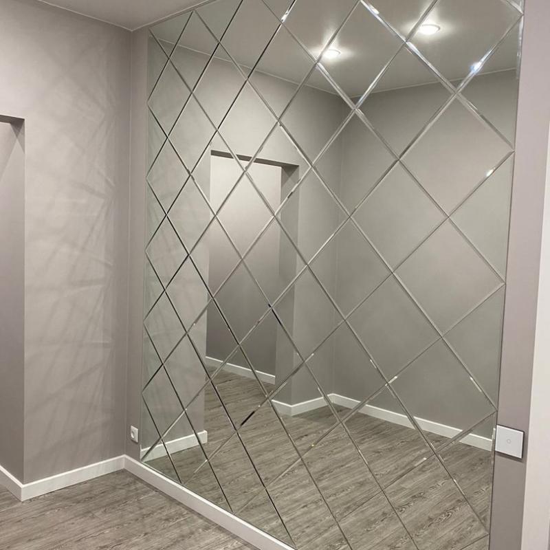 Использована зеркальная квадратная плитка с фацетом.